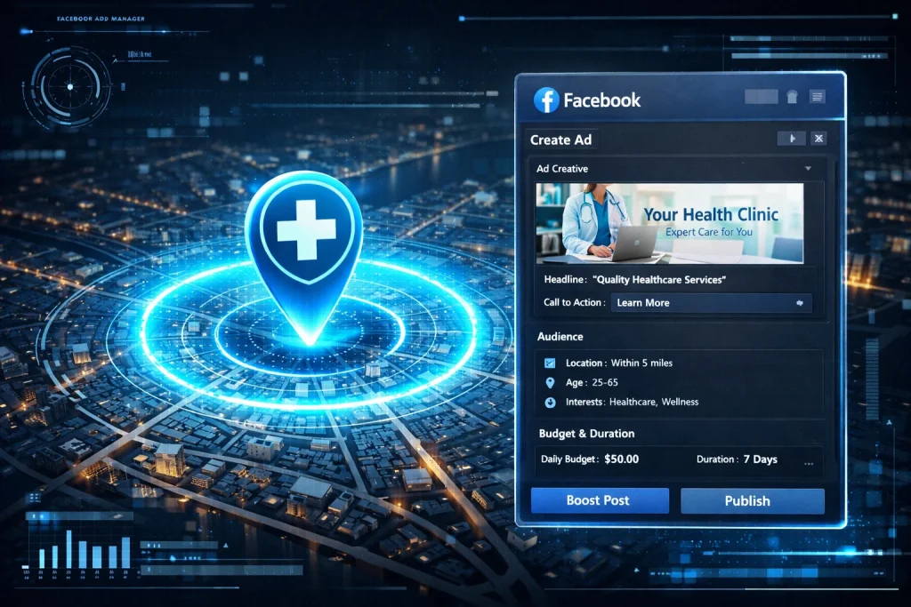 One of the biggest advantages of Facebook is its local targeting power. With smart Facebook marketing for doctors, you can target posts and ads to people near your clinic. You can even narrow your audience by age, interests, or health concerns.